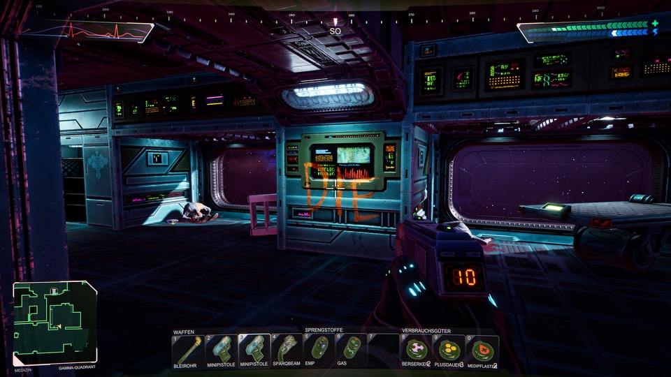 Aber auch ohne schwere Rätsel wird euch System Shock fordern, wie ihr es von heutigen Spielen kaum mehr gewohnt seid. Das Spiel nimmt euch ernst und überlässt dem Spieler die Entscheidung, wie er die Raumstation retten und Shodan besiegen will. Selbst die Rätsel unterscheiden sich von Spieldurchgang zu Spieldurchgang. Nichts ist gescripted und alles will erforscht werden. Ihr startet das Spiel auf der Medizin-Station. Neun weitere Stockwerke warten darauf von euch befreit zu werden.