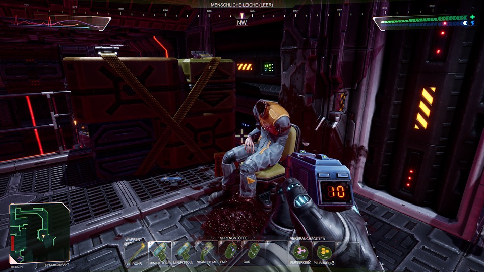 Die behäbigen Kämpfe ließ man jedoch leider unangetastet. So fühlen sich die Handwaffen relativ zäh an – Spaß macht das leider keinen. Mit dem Auffinden der ersten Pistole spielt es sich etwas flotter, aber an Egoshootermaßstäben sollte man System Shock nicht messen. Obwohl die Entwickler versucht haben, diesen Part durch Hinzufügen neuer Waffen im Vergleich zum Original aufzuwerten. Richtig befriedigend hat sich das für mich trotz allem leider nie angefühlt. Dafür fehlt einfach die Dynamik moderner Titel. Da dies ein zentraler Bestandteil von System Shock ist ,hätte dem Titel an dieser Stelle noch etwas Feinschliff gut getan.
