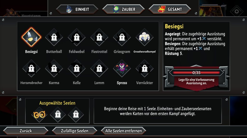 Der zweite Teil ist der neue Spielmodus Seelenretter. Hier dürft ihr euch zu Beginn eures Runs zusätzliche Modifikatoren für eure Startkarten auswählen.