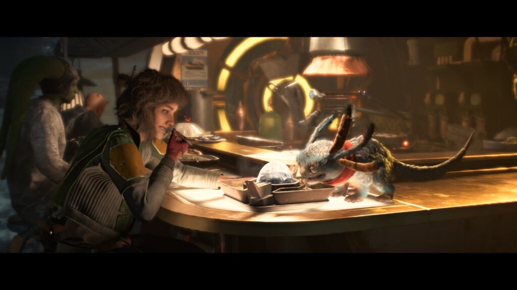 Star Wars Outlaws ist für mich eine Wucht. Die Immersion, die das Spiel schafft, ist vortrefflich und das mit einer Open World, die nicht mit allerlei Dingen zugekleistert ist, sondern sich natürlich anfühlt. Dabei macht unsere Anti-Heldin Kay eine vortreffliche Figur, wobei sie ohne Nix wohl nur halb so interessant wäre.