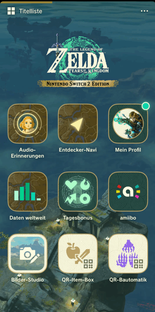 Die restlichen Verbesserungen hat Nintendo leider ausgelagert. Hierzu benötigt ihr die Nintendo Switch-App auf eurem Smart Device und könnt dann auf allerlei zusätzliche Funktionen zugreifen, die euch das Spielen erleichtern sollen. das Ganze nennt sich Zelda Notes und kann als eigenständige App in der Nintendo Switch-App angesehen werden. Beinhaltet sind dabei acht Funktionen, auf welche ich in Kürze eingehen möchte.
