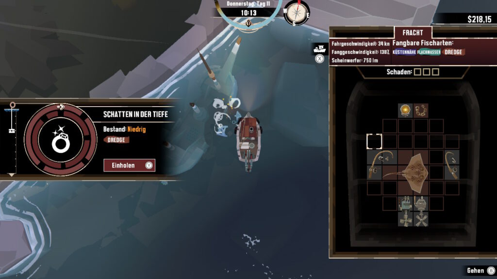 Das grundsätzliche Spielprinzip lässt sich dabei als Open World-Abenteuer beschreiben, welches anfänglich jedoch durch euer Boot limitiert wird. Dieses kann nämlich zu Spielbeginn nur auf ein einfaches Licht und einen langsam arbeitenden Motor zurückgreifen, sodass längere Ausflüge nicht möglich sind. Doch auch euer Equipment an Angelzubehör ist überschaubar und entwickelt sich erst im Laufe des Spiels. Hierfür müsst ihr Fische und andere Meeresbewohner fangen, Schätze heben und Quests erfüllen, um die eigene Kasse zu füllen. An verschiedenen Stellen könnt ihr dann neue Ausrüstungen entwickeln und diese in Auftrag geben, wodurch sich euer Schiff nach und nach verbessert.