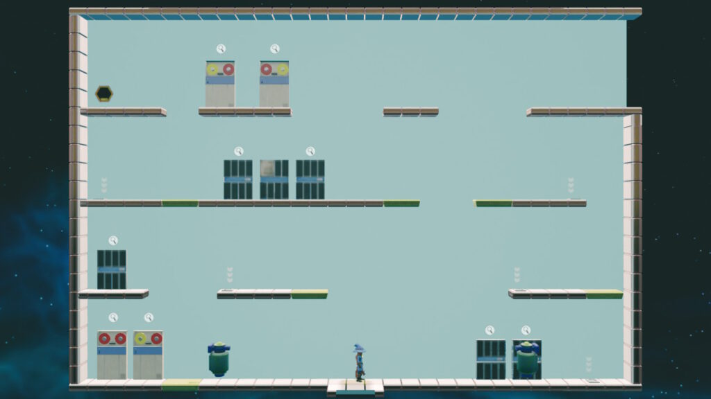Diesen Absatz könnte man eigentlich mit einem Satz abschließen, weil es eine Geschichte schlichtweg nicht gibt. Wir werden direkt in einen Raum geworfen und legen los. Kein Tutorial, keine Einstiegssequenz oder ähnliches. In Lumo 2 geht es wirklich nur darum, eine Lösung für die Räume zu finden. Man darf sich also nicht die Frage stellen, wieso man gerade in einem Raumschiff steckt, obwohl man zuvor noch als Magier unterwegs war.