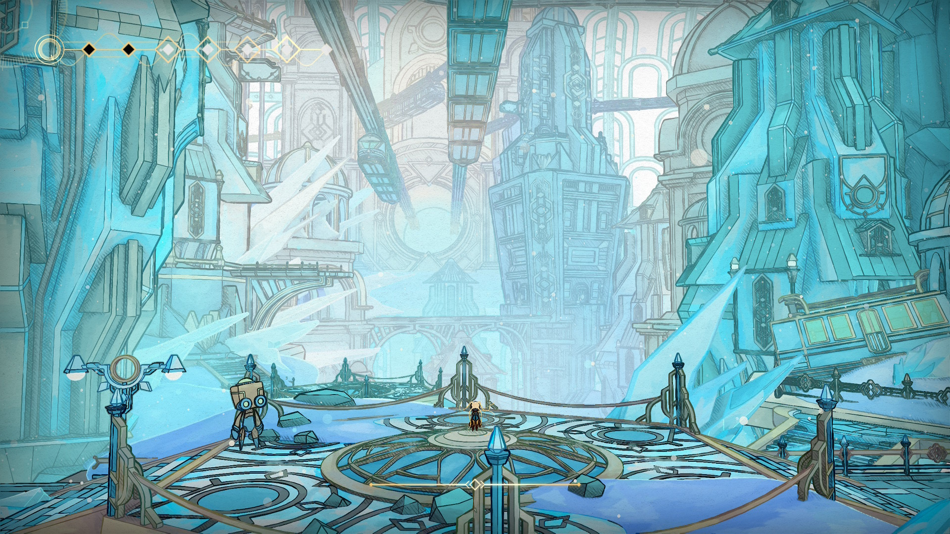 Auch die Platzierung von Zwischenbossen nach längeren, anspruchsvollen Platforming-Sequenzen sorgt gelegentlich für Frust. Hier wirkt das Balancing nicht immer durchdacht. Positiv fallen dagegen die optionalen Hilfssysteme auf: Bosse werden auf Wunsch nach jedem Tod schwächer, Gegner greifen im Pazifismusmodus nicht sofort an oder MIO erhält zusätzliche Schutzmechaniken. Diese Optionen greifen nicht ins Kerndesign ein, sondern erlauben eine sinnvolle Feinjustierung des Schwierigkeitsgrades.