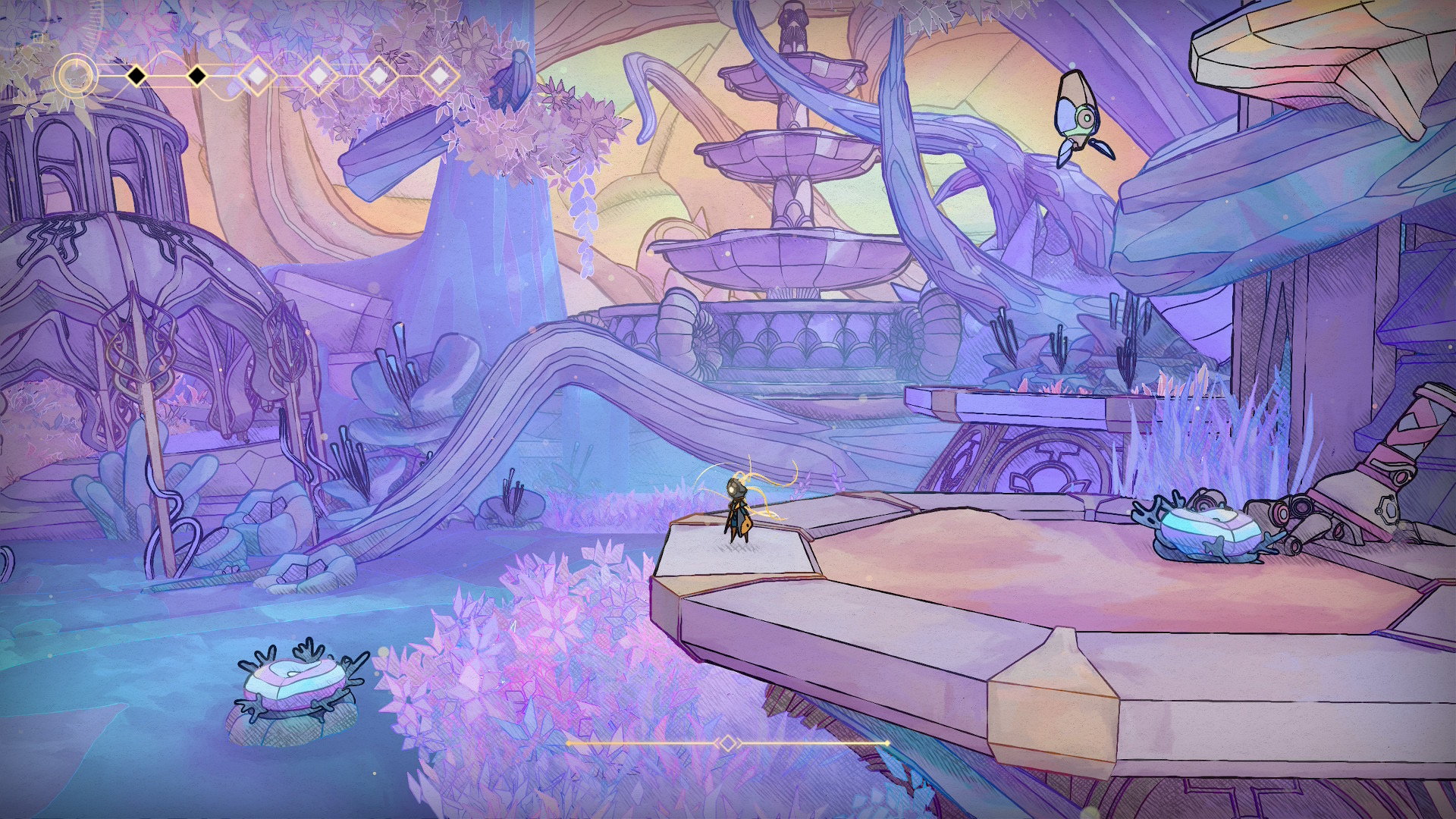 Der Soundtrack unterstreicht die Atmosphäre hervorragend. Melancholische Synthesizer, ruhige Ambient-Flächen und gezielte Piano-Momente wechseln sich mit treibenden Electro-Beats in Bosskämpfen ab. Bild und Ton greifen so eng ineinander, dass das Spiel stellenweise mehr wie ein interaktives Kunstwerk als ein klassischer Action-Platformer wirkt.