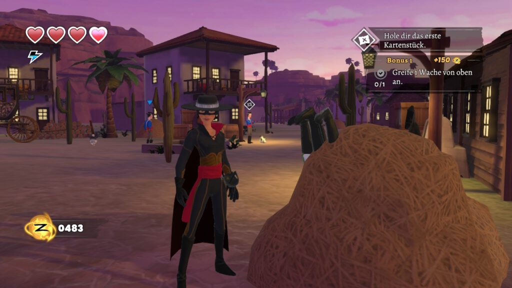 Diese müssen zudem nochmals positiv hervorgehoben werden, da sie euch trotz des kindlichen Settings verschiedene Handlungsoptionen bieten. So habt ihr immer wieder in der Hand, ob ihr Gegner direkt konfrontiert oder euch heranschleicht. Mittels eurer Peitsche dürft ihr nämlich hoher gelegene Areale erreichen und so eure Route planen, um im geheimen vorzugehen. Nicht von der Hand zu weisen ist nichtsdestotrotz, dass die Missionen inhaltlich nur wenig Abwechslung bieten, was bei Spielen für Kinder und Jugendliche ja leider häufig der Fall ist.