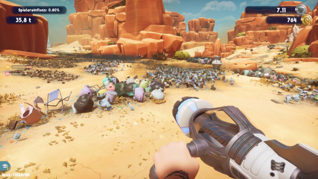 Den Höhepunkt des Spiels machen die großen Multiplayer-Karten aus. Hier tummeln sich bis zu 25 Spielerinnen und Spieler auf ein und der selben Map. Alle haben auch das identische Ziel. In diesen Multiplayer-Partien erhöht sich der Verschmutzungsgrad auf ein Vielfaches. In der Demo waren es mit meinem Einstieg in die Session ganze 42 Tonnen, die es zu entfernen galt. Das hört sich nicht nur viel an, es füllt sich auch genau so an. Einziger Kritikpunkt für mich an dieser Stelle war, dass mir persönlich nicht bewusst war, wie ich Material für Leitern usw. herstellen konnte, obwohl ich Materialien eingesammelt habe. Allerdings kannte sich immer ein Mitstreiter aus, sodass diese Problematik eher zur Nebensache tendierte.