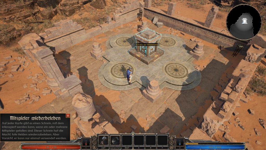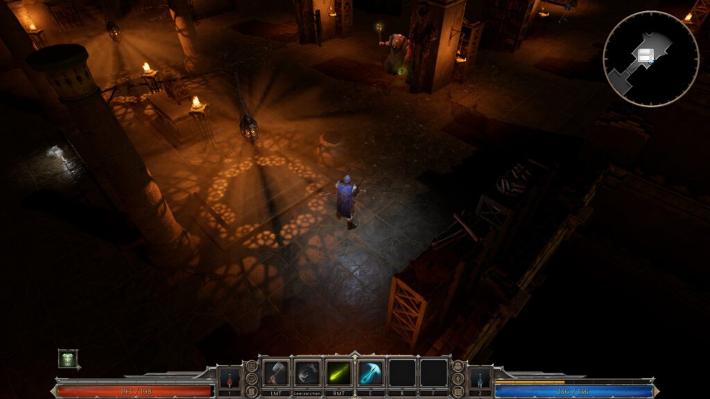 Wie bereits angedeutet, kann man seine Gegenstände nur sicher in den nächsten Durchlauf bringen, wenn man den Endboss besiegt. Die Entwickler haben aber noch einen zusätzlichen „Speicherpunkt“ eingebaut. So kann man in der Spielwelt eine Truhe finden, in der man wichtige Materialien platzieren kann, die am Ende im Hauptmenü sicher gelagert werden. Man darf sich das aber nicht so vorstellen, wie bei einem Escape from Tarkov indem man einen gefühlt unendlichen Lagerraum hat. In Varthos: Heir to the Throne ist unser Platz sehr begrenzt und eine Rüstung nimmt einen großen Raum ein. Ich würde mir hier etwas mehr Stauraum wünschen und die Möglichkeit Profit daraus zu schlagen. Momentan hat man nur die Möglichkeit seinen Charakter auszustatten, aber ein gewisser Bonus in Form eines Shops (kein Pay-to-Win-Prinzip!) in dem man sich mit Währung bessere Gegenstände kaufen kann, wäre sicher sinnvoll.