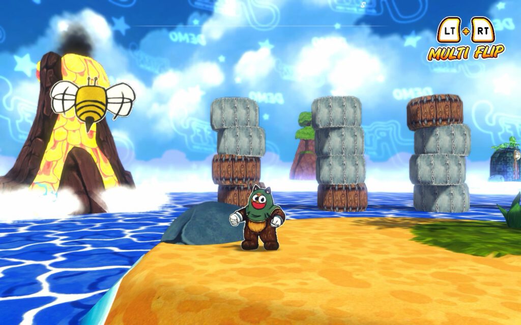 Neben dem FLIP darf Ruffy aber auch in Platformer-Manier durch die Gegend hüpfen, er kann Objekte zerstören, Truhen öffnen oder auch seinen Bienen-Freund Pip nutzen, um ein Stück weit zu fliegen. Das Gameplay erinnert dabei klar an Größen des Platformer-Genres, wenn es gilt, große Sterne zu sammeln, um neue Level zu öffnen. Diese könnt ihr von der Oberwelt aus direkt ansteuern, wobei auch diese allerlei Geheimnisse birgt. Mein Entdeckerdrang wurde somit bereits in der Demoversion angesprochen und ich bin gespannt, was das Hauptspiel alles bietet.